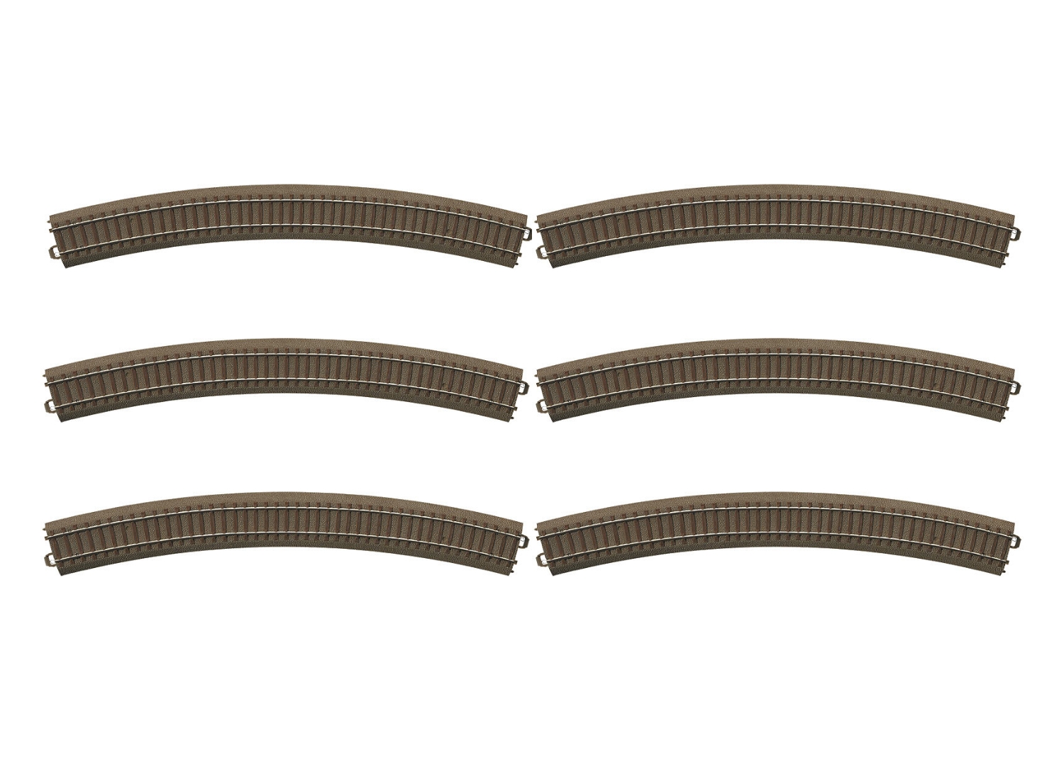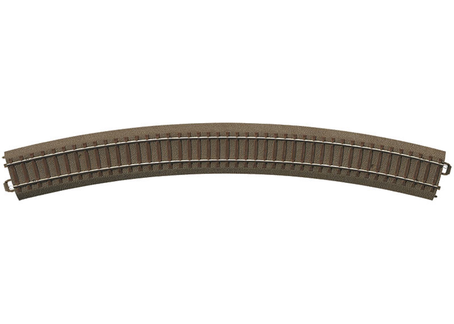 Gekrümmtes Gleis für das Trix C-Gleis. Parallelgleis zum Radius R4 im Abstand von 64,3 mm. 12 Gleise bilden einen Kreis mit 133 cm Außendurchmesser.