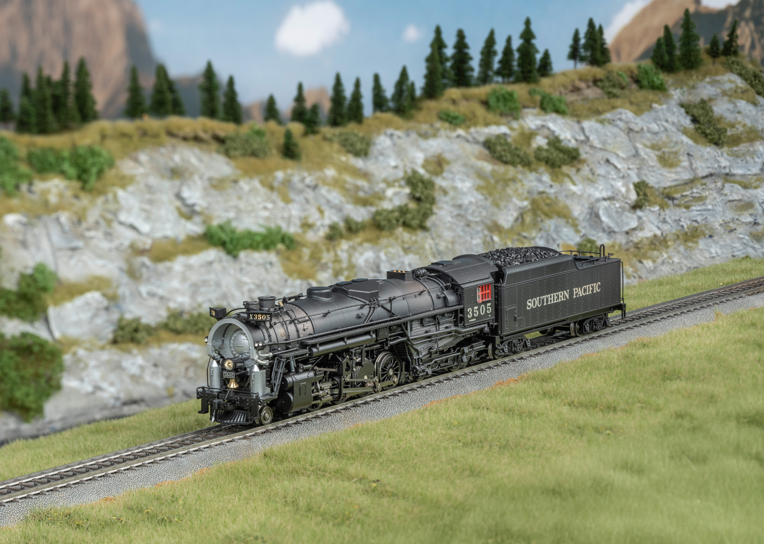 Vorbild: Dampflokomotive mit der Achsfolge 2-8-4 "Berkshire" der Southern Pacific. Tiefschwarze Grundfarbgebung. Betriebsnummer 3505. Betriebszustand zwischen 1945 und 1950. Eine von 25 gebauten Lokomotiven mit dem markanten Coffin-Vorwärmer.