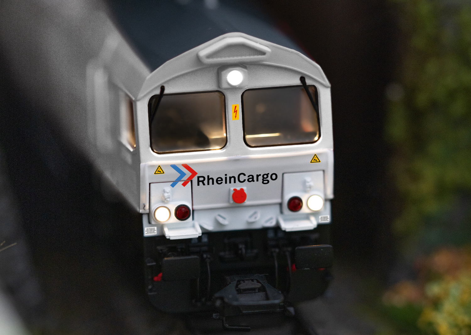 Vorbild: Dieselelektrische Güterzuglokomotive JT42CWR, besser bekannt als Class 66. Diesellokomotive der RheinCargo GmbH & Co. KG, Neuss. Betriebszustand 2022.